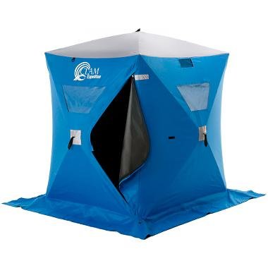 Clam Expedition 5x6' FLR Icefishing Shelter. One of the easiest - to - use Shelters ever produced! Maximize your lake access! The outdoor experts at Clam have done it again! Their new Expedition Shelter has 4 pre-cut hole zones built right into the floor plan, two of which let you break out the auger and drill a pair of side-by-side holes. More underwater access means more fish! It's an innovative design that really helps remove the guesswork, and gets you closer to the fish than ever! Holy mackerel: Lightning-fast pop-up set-up; Weather-resistant materials offer superior protection from the elements; Double-walled floor plan offers generous accomodations; Removable pop-up top makes everything that much more portable; Large 4 x 6' floor area when deployed; Weighs just 73 lbs.; Make it nice on the ice! Order yours now! Clam Expedition 5x6' FLR Icefishing Shelter